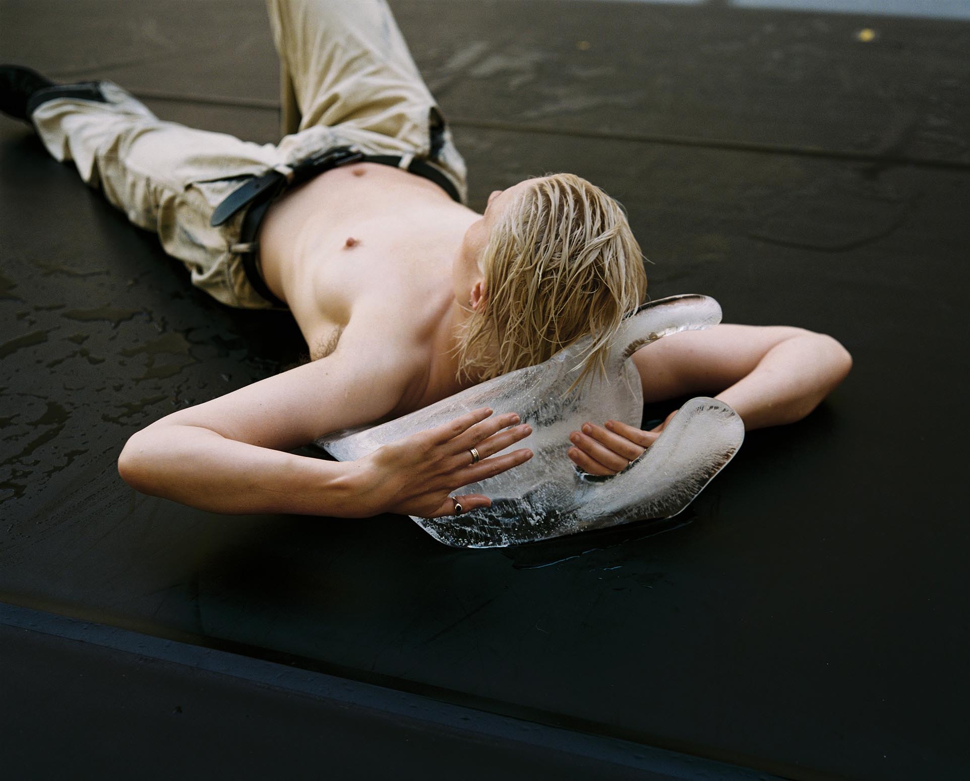 En la seva darrera peça, Ola Maciejewska pren com a punt de partida el llibre homònim The Second Body de Daisy Hildyard, per apropar-se a les formes de relació que produeix la nostra existència profundament implicada i sensible amb el que ens envolta, i així qüestionar l’alteració humana del clima i l’ecologia. En aquest relat, els humans tenen dos cossos –un de tangible, fet de carn i ossos– i un altre, més difús, entrellaçat amb una xarxa d’intercanvis amb altres ecosistemes. Intrigada per aquesta presència simultània, Ola Maciejewska explora la dissolució dels límits entre objecte i subjecte, cos animat i inanimat, fins al punt de poder observar com el procés coreogràfic en el qual els cossos i la matèria s’interrelacionen i es fan codependents. A escena, un cos i un bloc de gel: el primer, un organisme complex fet de músculs, ossos i venes, un 80% del qual és líquid; el segon, fet d’aigua de l’aixeta congelada. The Second Body no és un duo, però tampoc un solo, és una invitació a contemplar la permeabilitat d’aquests dos cossos d’aigua en constant transformació. És una pregunta sobre la relació del cos amb el seu entorn i les possibilitats d’incorporar-lo a si mateix des de repertoris sensibles i de moviment que articulen durada i resistència. Es tracta d’un manifest sobre la dependència, l’escala, l’exterioritat radical, i els límits, que defensa la immediatesa i la bellesa de l’experiència que pren sentit a través d’allò sensorial.